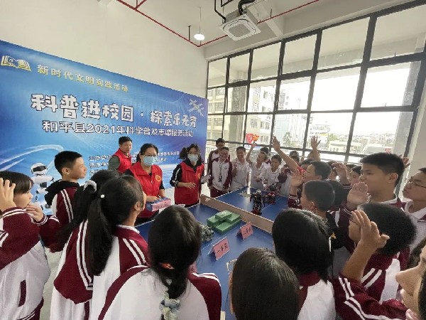 11月3日,和平县科协“科普进校园·探索乐无穷”科普大篷车走进福星中学,智能机器人、VR体验……一件件科技感十足、操作性强的科普展品引得同学们不时发出阵阵惊叹。