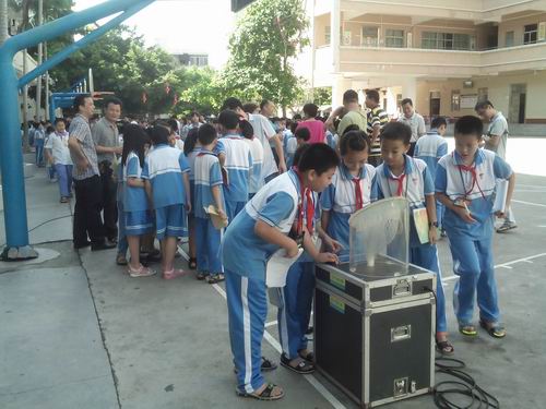 科普大篷车进校园,是青少年科技教育活动的内容之一。近年来,电白一小的科技教育成果显著,每年都有学生的小发明作品参加广东省科技创新大赛,并获得好成绩,共获得广东省科技大赛荣获一等奖1次,二等奖4次,三等奖9次;申请国家专利2项。学校被评为广东省青少年科技创新大赛优秀组织单位、广东省知识产权教育试点学校等荣誉。